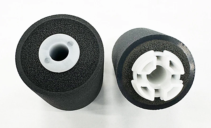 Our two-layer paper feed rollers are crafted with a sponge layer on the first and a solid layer on the second, using materials of varying hardness. Thanks to our advanced production techniques, we can mass-produce these rollers with exceptional dimensional accuracy. This design effectively addresses long-standing noise issues, offering a quieter, more reliable performance for customers.